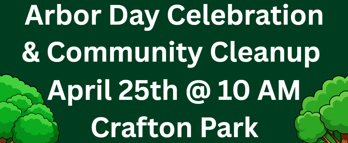 Join us this Saturday, April 25th, 10 AM at Crafton Park to celebrate Arbor Day! ๐ŸŽ‰