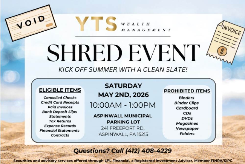 Join YTS for a Complimentary Shred Event on Saturday, May 2, 2026, from 10:00 a.m. to 1:00 p.m.