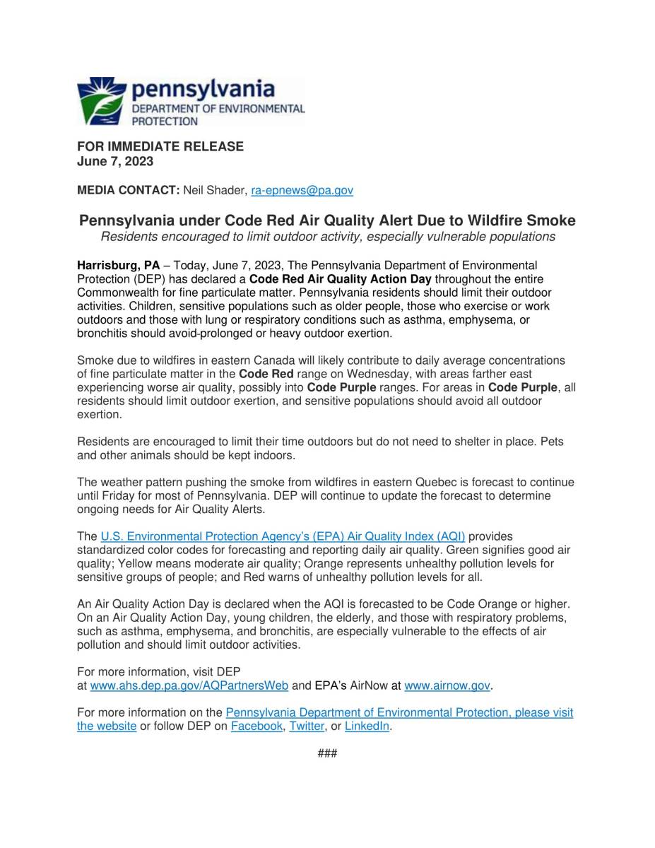 Residents are encouraged to limit outdoor activity, especially vulnerable populations.