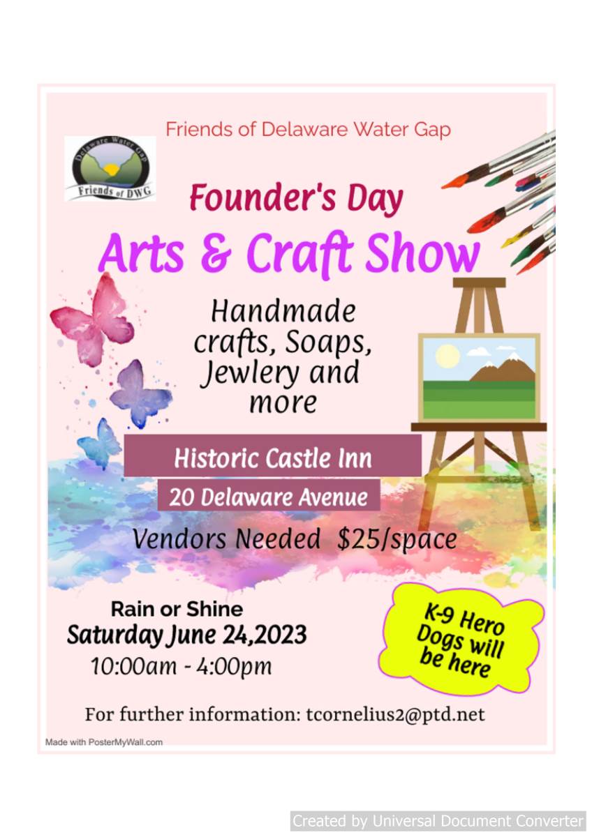 We are looking for vendors to participate in the Founder's Day Arts and Crafts Show on Saturday, June 24.