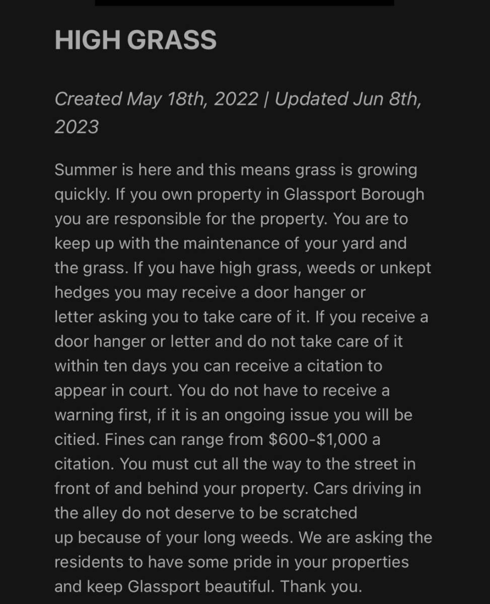 REMINDER: Cut your grass. You could be cited.