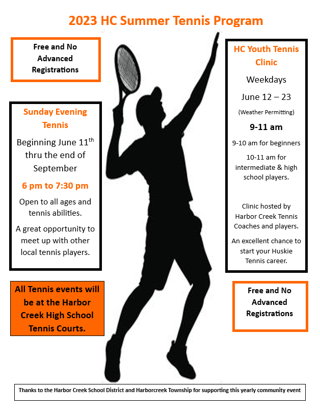 Due to the rain this morning- todays HC Tennis Clinic is cancelled. Weather permitting- we will see you tomorrow morning
