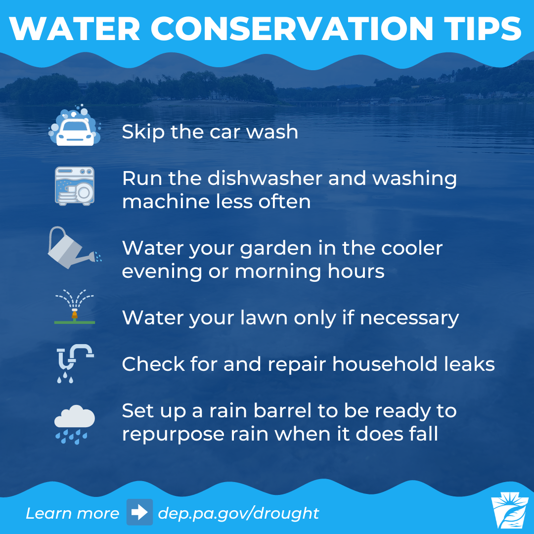 The recent rains have not been enough to overcome our rain deficit. As a result, the Pennsylvania Department of Environmental Protection (DEP) has declared a statewide drought watch. The North Wales Water Authority has extensive water conservation tips and resources on our website and this flyer from PA DEP is also a resource for conservation ideas.