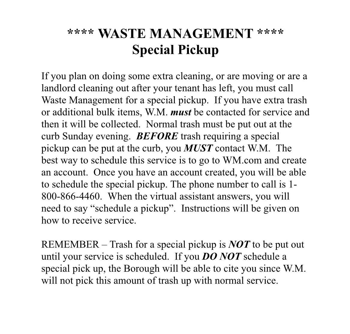 Waste Management- Special Pick Up