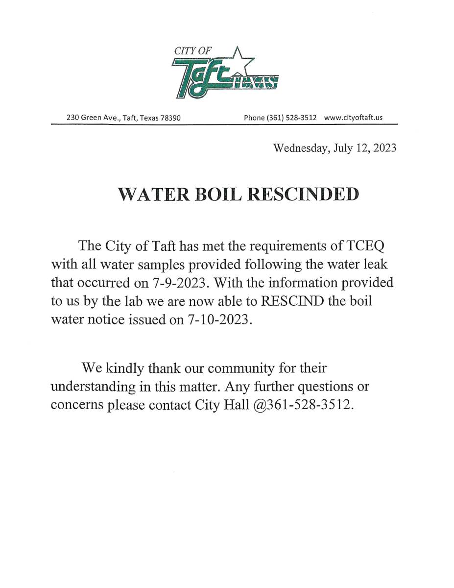 7/12/2023 - Water Boil Notice has been Rescinded.