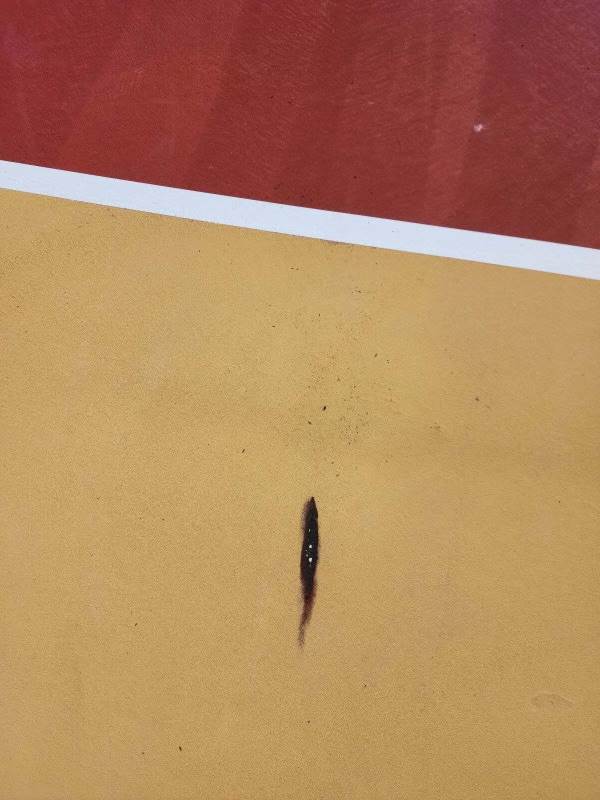 Brookside Park’s basketball court was redone on Friday and opened to the public. At some point over the weekend, it has already become damaged. The damage appears to have been done by bike tires.