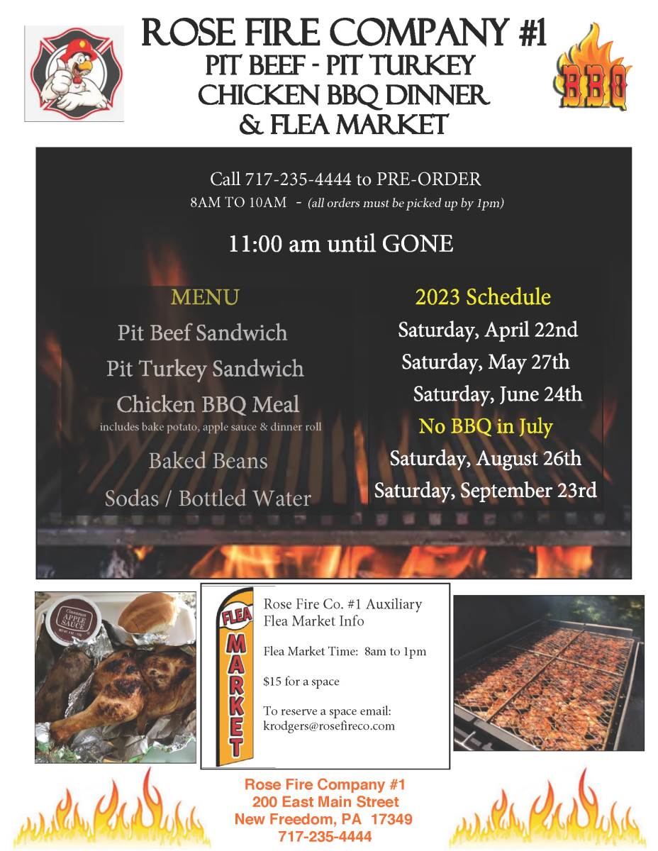 Pit Beef, Pit Turkey, Chicken BBQ Dinner & Flea Market