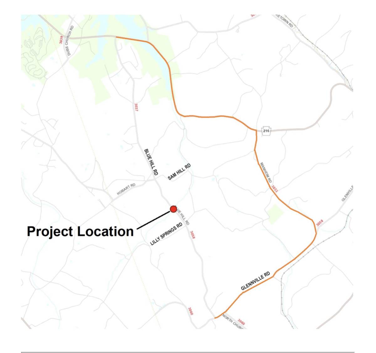 A detour will be in place using Route 216, Manheim Road (Route 3033), and Glenville Road.