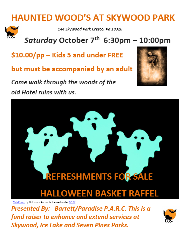 Join us for a haunted walk through the woods of the old hotel ruins at 144 Skywood Park, Cresco, PA 18326.