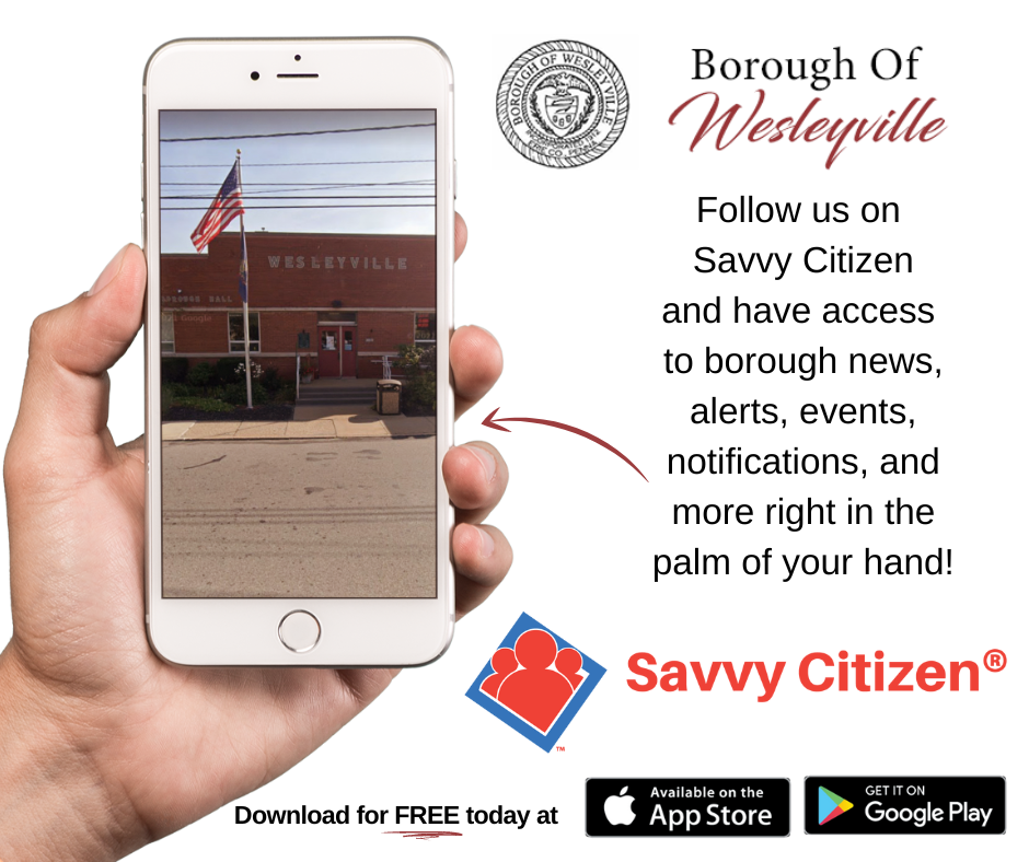 The Wesleyville Borough uses Savvy Citizen to communicate important notifications with residents. Savvy Citizen provides a fast and easy way for local governments to send municipal updates, event reminders, community news and alerts directly to residents via push notifications, E-mails, and text messages. It’s FREE and simple for residents to sign up!