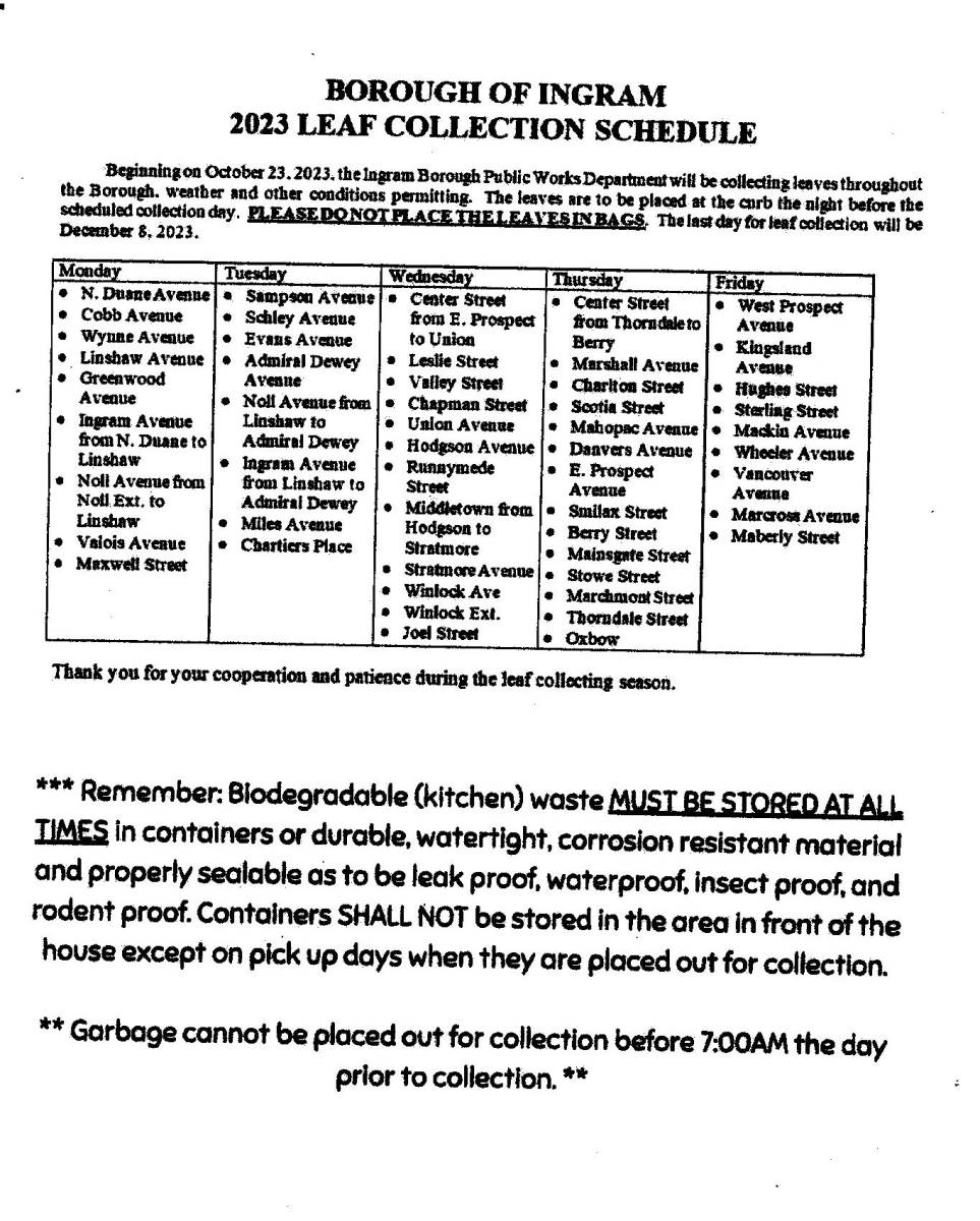 The leaf collection schedule for the Borough is attached.
