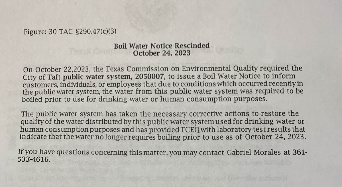 Good Afternoon COT residents we would like to inform you’ll that the water boil has now been rescinded.