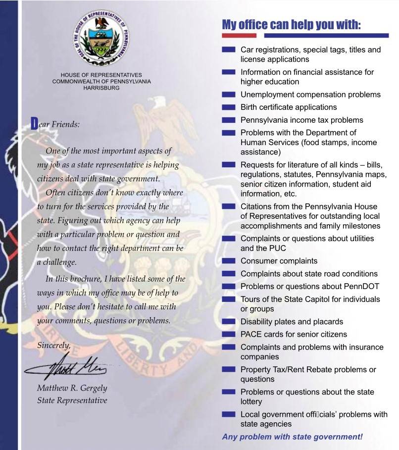 Matthew Gergely is the State Representative of the 35th Legislative District.