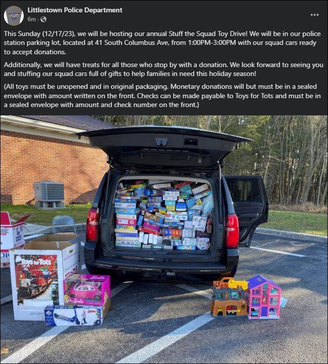 Additionally, we will have treats for all those who stop by with a donation. We look forward to seeing you and stuffing our squad cars full of gifts to help families in need this holiday season!