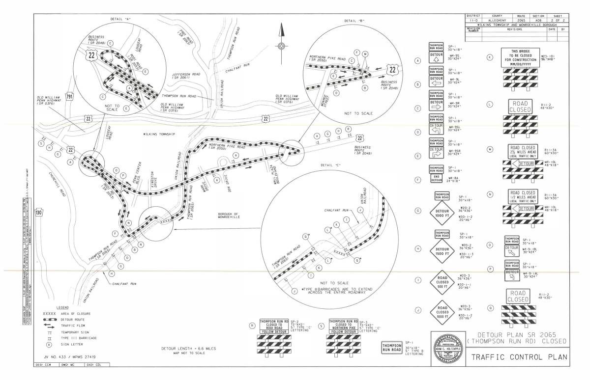 Beginning March 19th and lasting approximately two weeks, Thompson Run Road will be closed for bridge repair work.