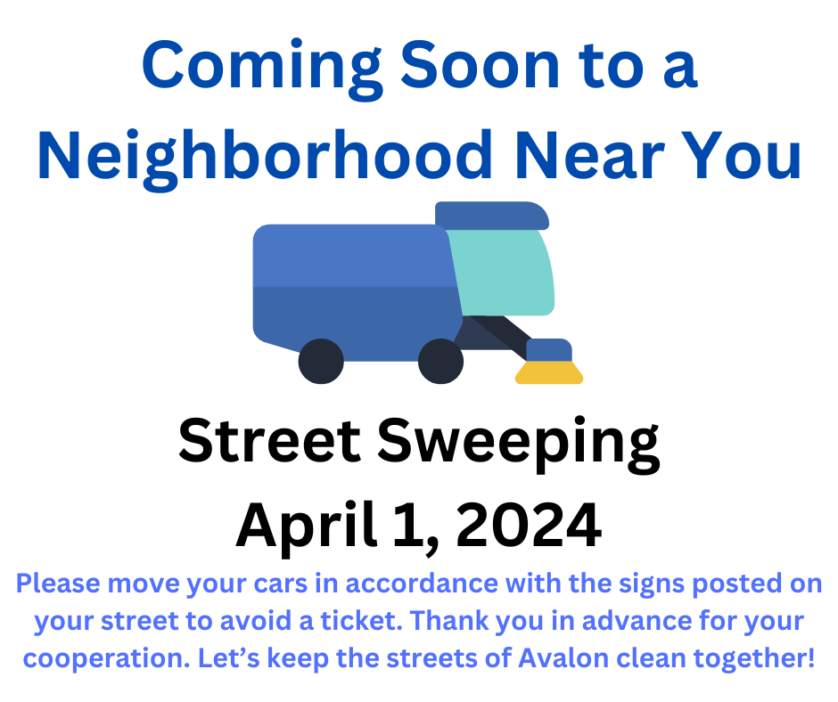 A friendly reminder that Street Sweeping season runs from April 1, 2024, through November 30, 2024. Please move your cars according to the posted street signs to avoid a $25.00 ticket! We appreciate your cooperation.