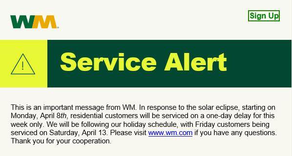 A message from Waste Management: Residential service in Harborcreek will be one day late this week.