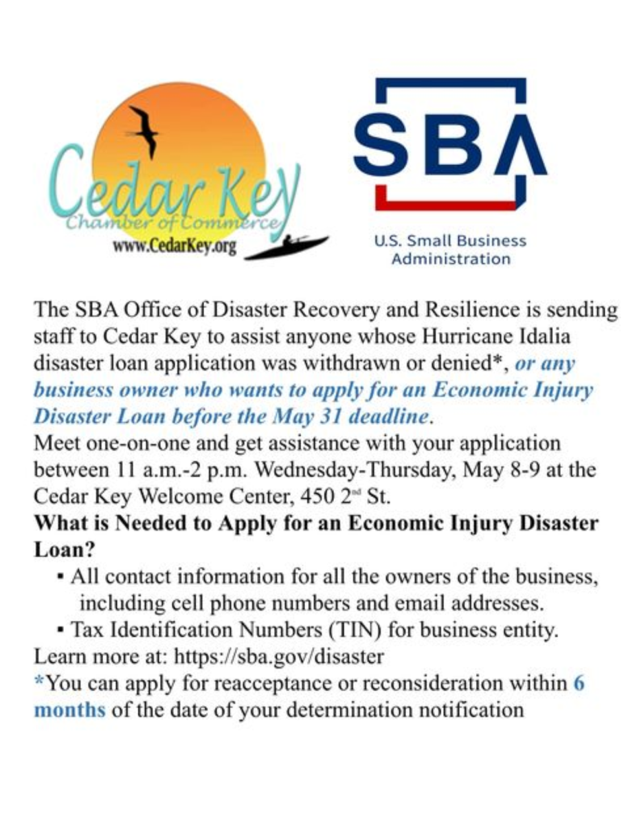 The SBA will be at the Welcome Center until 2 today and tomorrow. The flyer is attached.