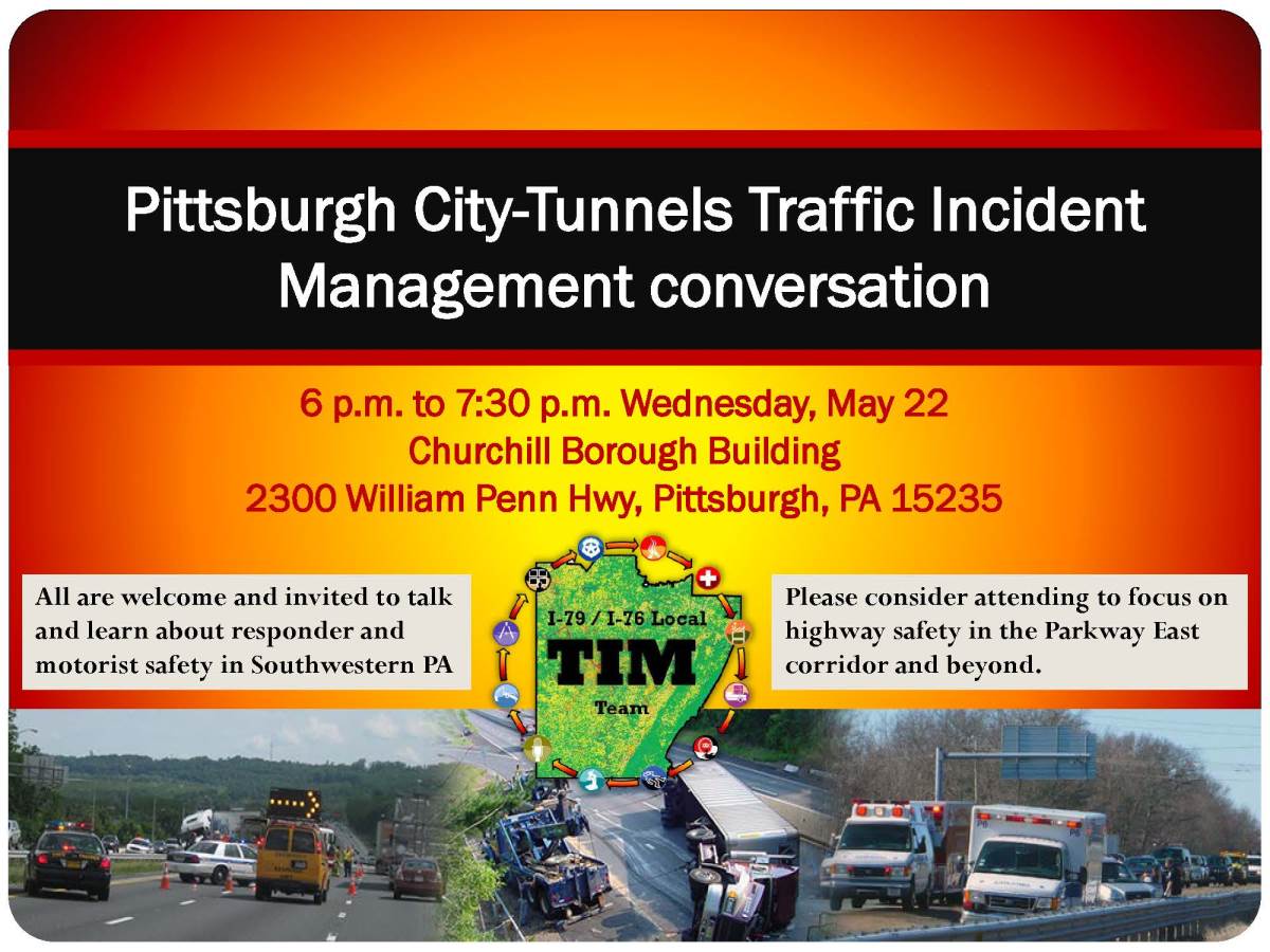 All are welcome and invited to talk and learn about responder and motorist safety in Southwestern PA! Please consider attending to focus on highway safety in the Parkway East corridor and beyond.