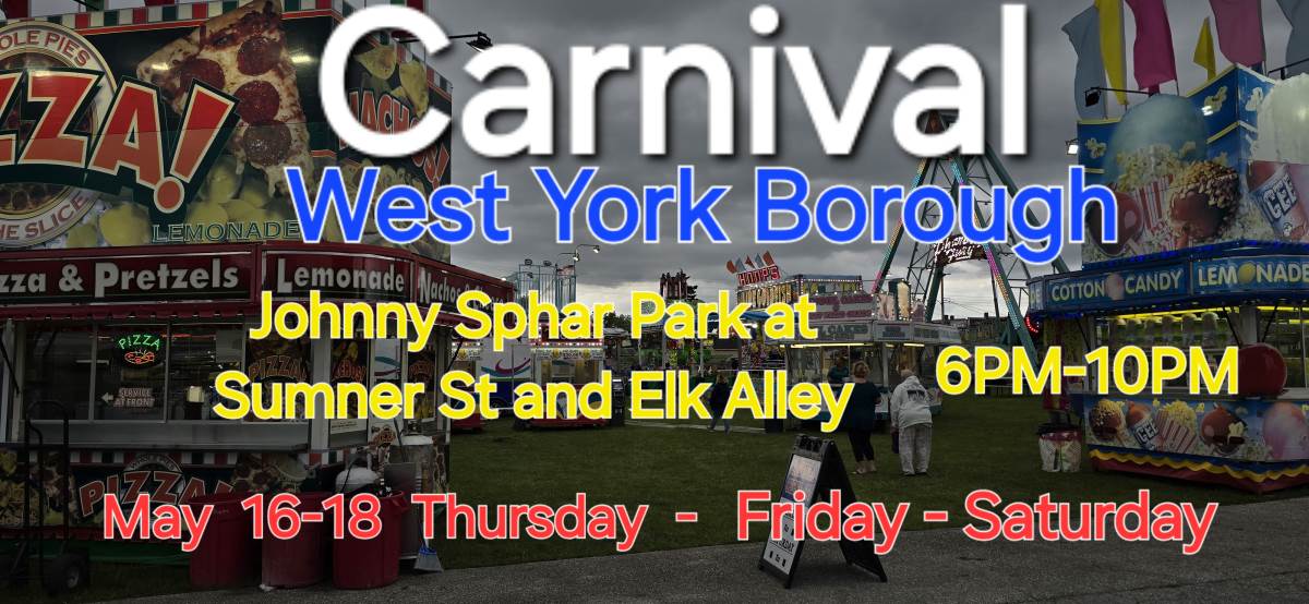 Looks like we are in for some beautiful weather! Come out and have some fun with friends and family at the West York Borough Carnival by Haughton Enterprises! Wristbands available. Rides, Games, and lots of food.