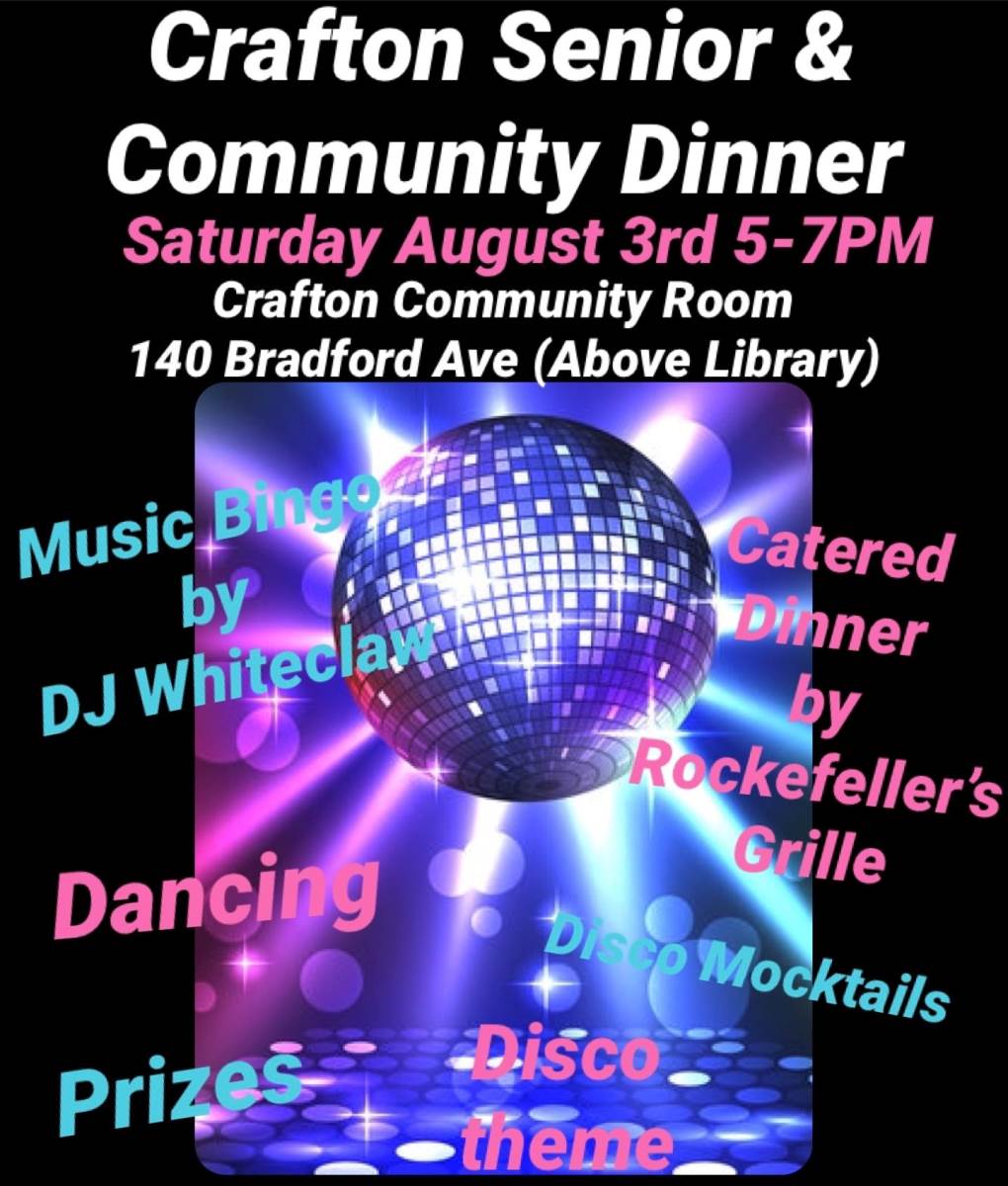 Tickets are $10 per person and you must register online by July 26th on the Crafton Borough website. Space is limited, so “hustle” on over to the site and register today! We can’t wait to feel the disco vibes and have a good time with you!