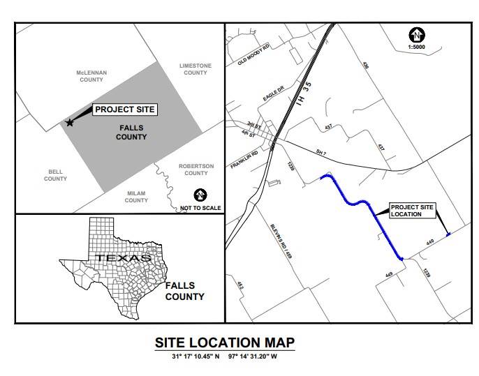 The location will generally take place along F.M. 1239, but also includes small sections of C.R. 440 and C.R. 449 in Falls County.