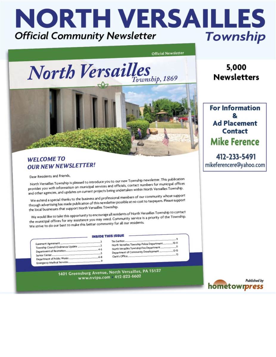 This notification was posted by North Versailles. North Versailles is solely responsible for this notification and unless specifically indicated, no other community or individual utilizing Savvy Citizen is sponsoring, responsible for, or endorsing this notification.