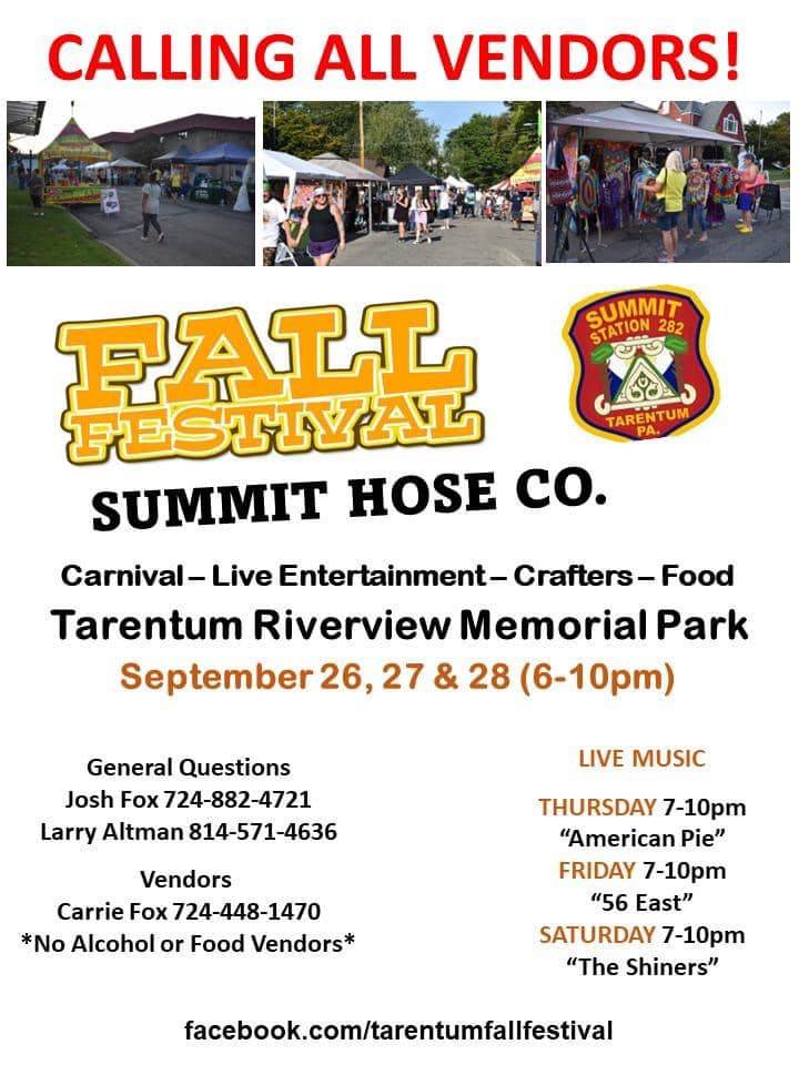 Calling All Vendors for Summit Hose Company's Annual Fall Festival!