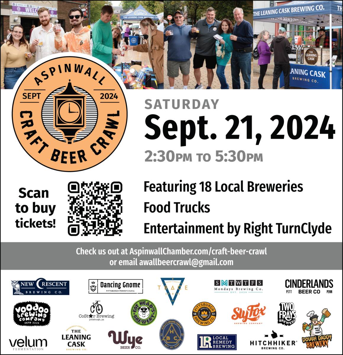 Aspinwall Chamber of Commerce Craft Beer Crawl. Get your advanced tickets now! https://aspinwallchamber.com/craft-beer-crawl/