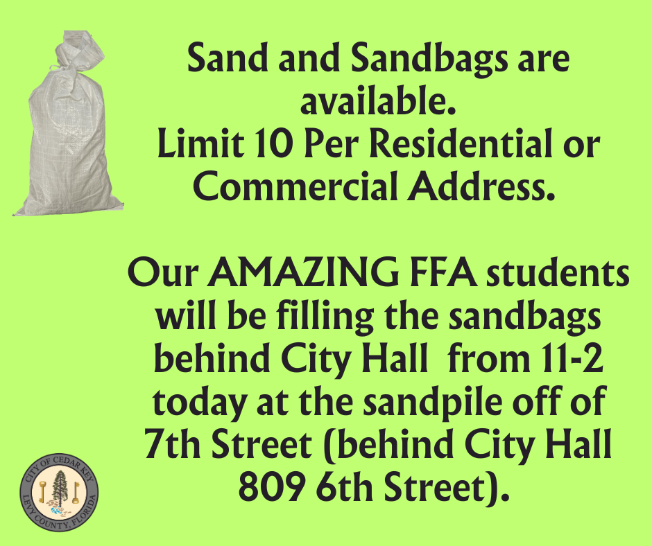 Our AMAZING FFA students will be filling the sandbags behind City Hall from 11-2 today at the sandpile off of 7th Street (behind City Hall 809 6th Street).