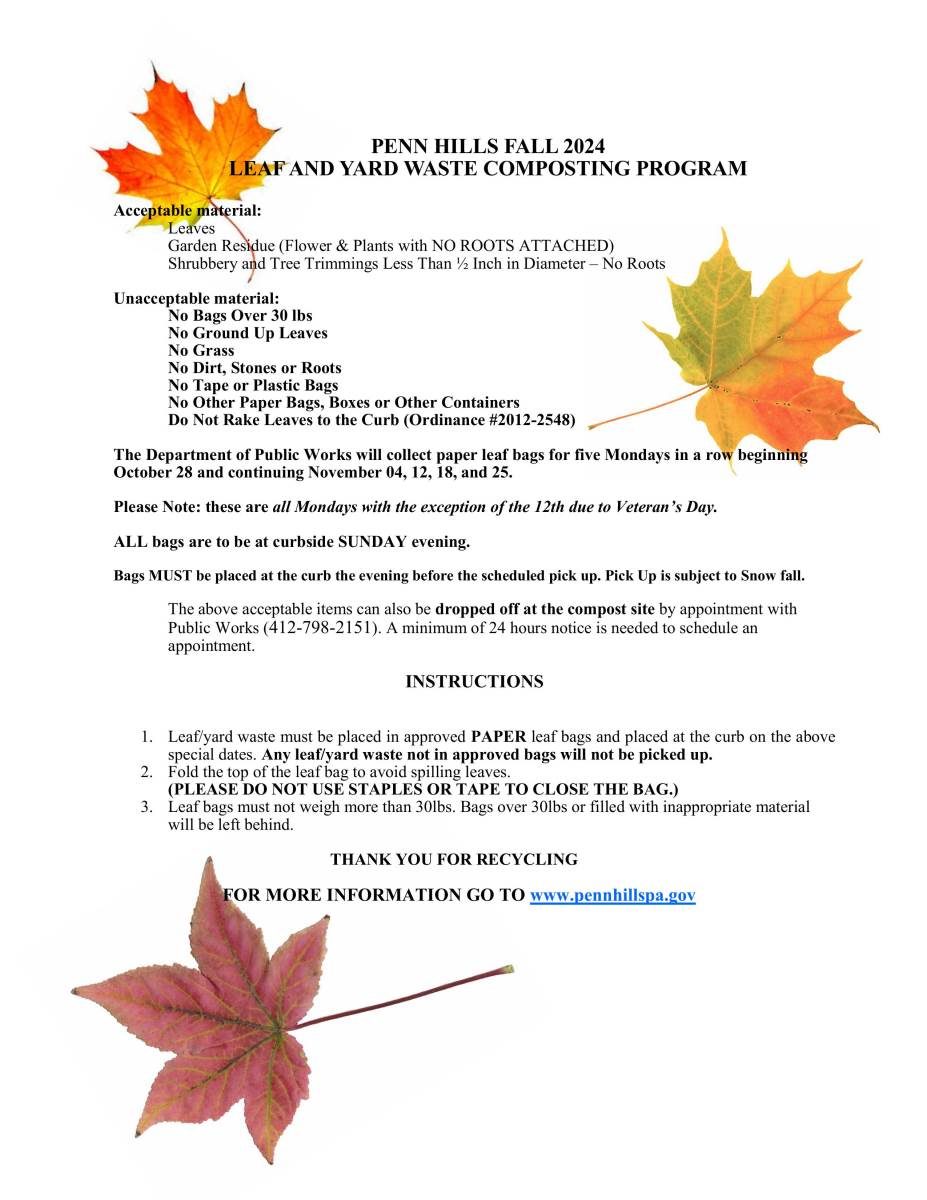 PENN HILLS FALL 2024 LEAF AND YARD WASTE COMPOSTING PROGRAM