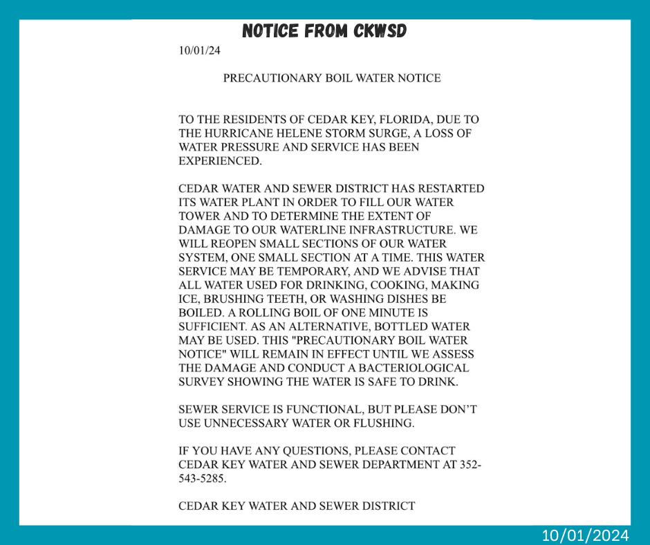 This notification was posted by City of Cedar Key. City of Cedar Key is solely responsible for this notification and unless specifically indicated, no other community or individual utilizing Savvy Citizen is sponsoring, responsible for, or endorsing this notification.