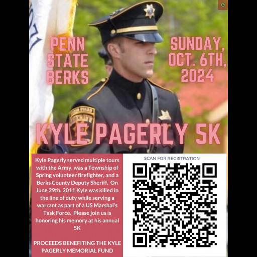 On Sunday, October 5, 2024 members RAN IN DEPUTY PAGERLY MEMORIAL 5K EVENT Members of the Caernarvon Township Police Department participated in the Annual Deputy Kyle Pagerly 5k. Deputy Pagerly was killed in the line of duty on 06/29/2011 while serving a warrant as part of a US Marshal's Task Force.