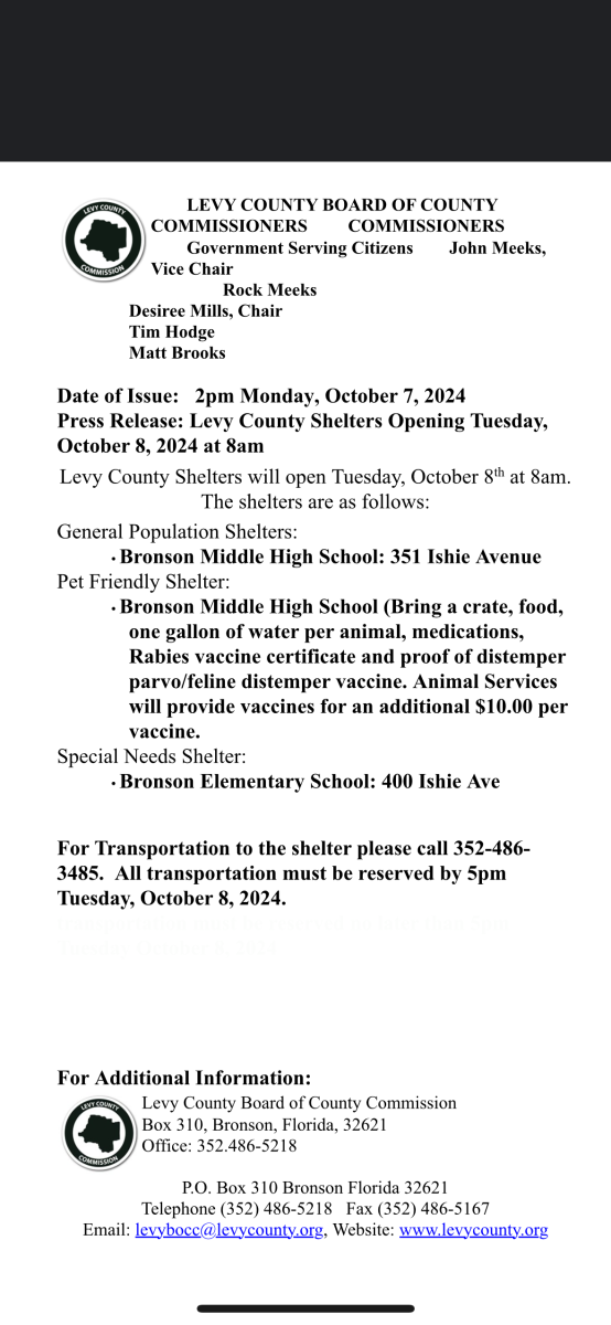 Yankeetown greatly encourages everyone to evacuate please see attached shelter information.