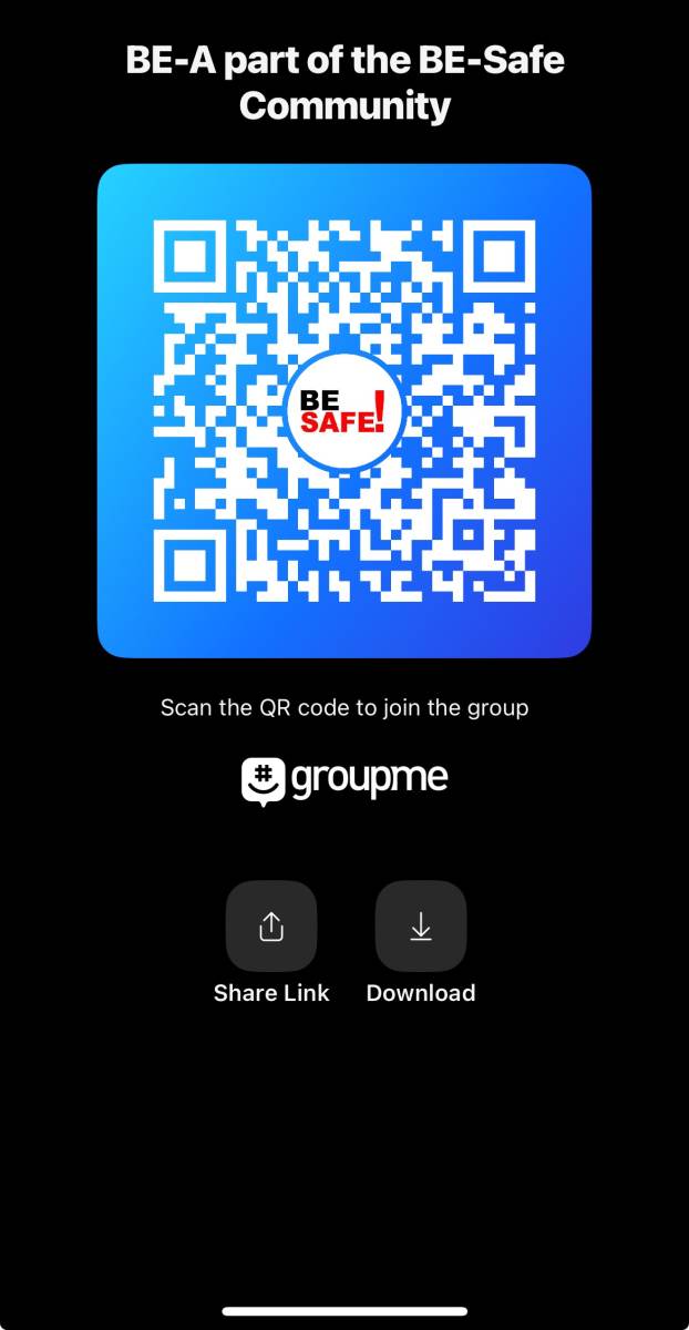 You're invited to the group 'BE-A part of the BE-Safe Community' on GroupMe. Click here to join:https://groupme.com/join_group/94515830/iGpXjBje