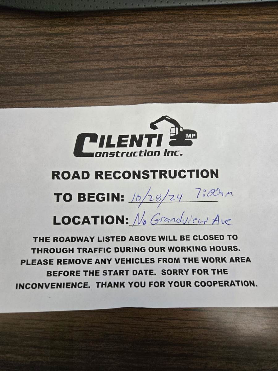 The contractor did walk along North Grandview placing flyers notifying residences but if you did not receive one and live in the area, please see attached.