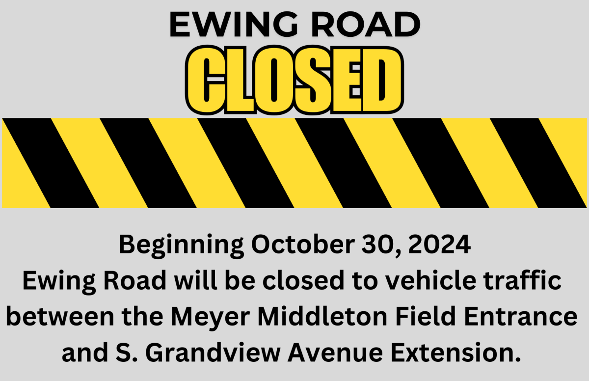 Effective immediately, Ewing Road is CLOSED to vehicles between Meyer Middletown Field and South Grandview Ext. The 2018 road repairs have experienced significant subsidence, making vehicular traffic unsafe.