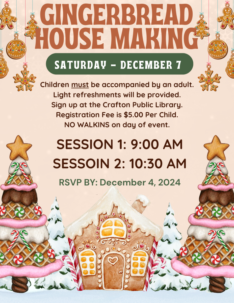 For more information, stop in the Crafton Public Library @ 140 Bradford Avenue.