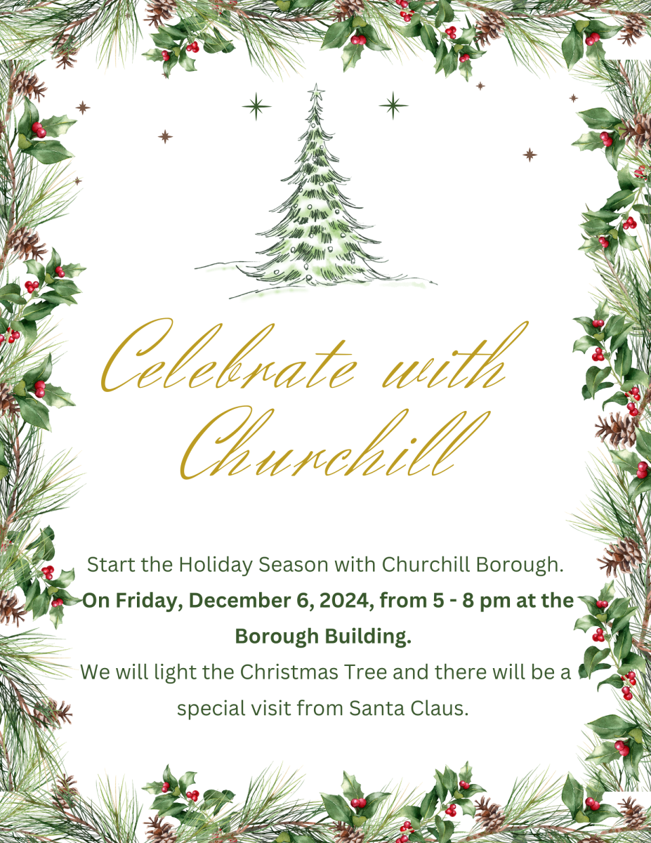 Please join us for our Tree Lighting tonight from 5:00 to 8:00 p.m. at the Borough building. Santa will visit, cookie decorating will be available, and hot chocolate and treats will be served. We hope to see you there!