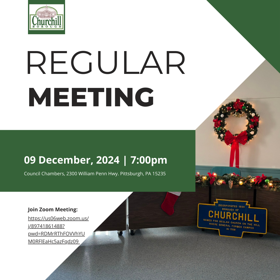 Churchill Borough Council is having a Regular Meeting tonight at 7pm.