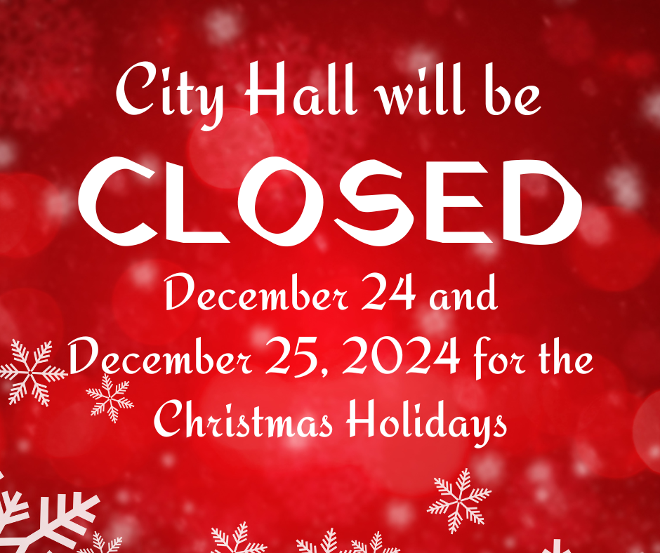 City Hall will be Closed December 24 and December 25, 2024, for the Christmas Holidays