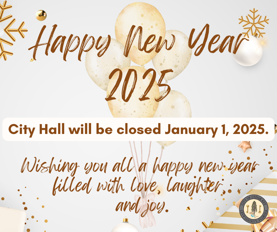 City Hall will be closed on January 1, 2025. Wishing you all a happy new year!!