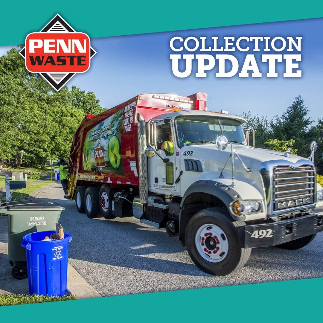 Due to the inclement weather Penn Waste will be closed Monday January 6th. All Penn Waste operations will be operating on a holiday schedule for this week. Monday customers will be collected Tuesday. Tuesday customers will be collected Wednesday, Wednesday customers will be collected Thursday, Thursday customers will be collected Friday, and Friday customers will be collected Saturday.