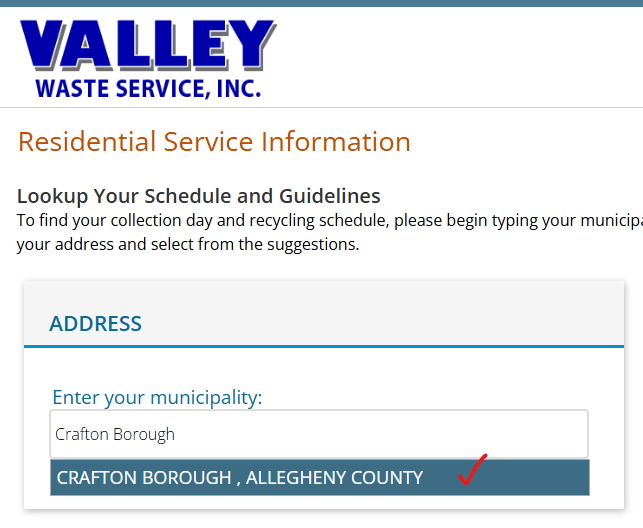 With the 2025 change in waste collection haulers, some residents may not be sure when their new trash collection day is. Valley Waste has a convenient tool to help! You can search by address.