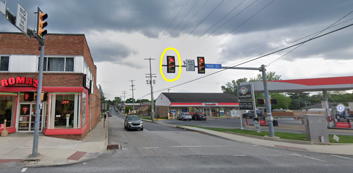 A new light pattern has been programmed at the intersection of Main St and Walnut St (At the Turkey Hill). A signal on the south side of the intersection and a signal on the north side of the intersection have gotten ARROWS, meaning the signals on the left have 4 lights, with the bottom one being a GREEN ARROW.