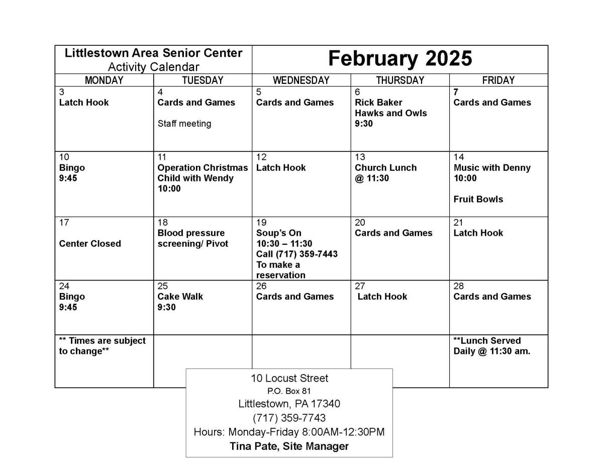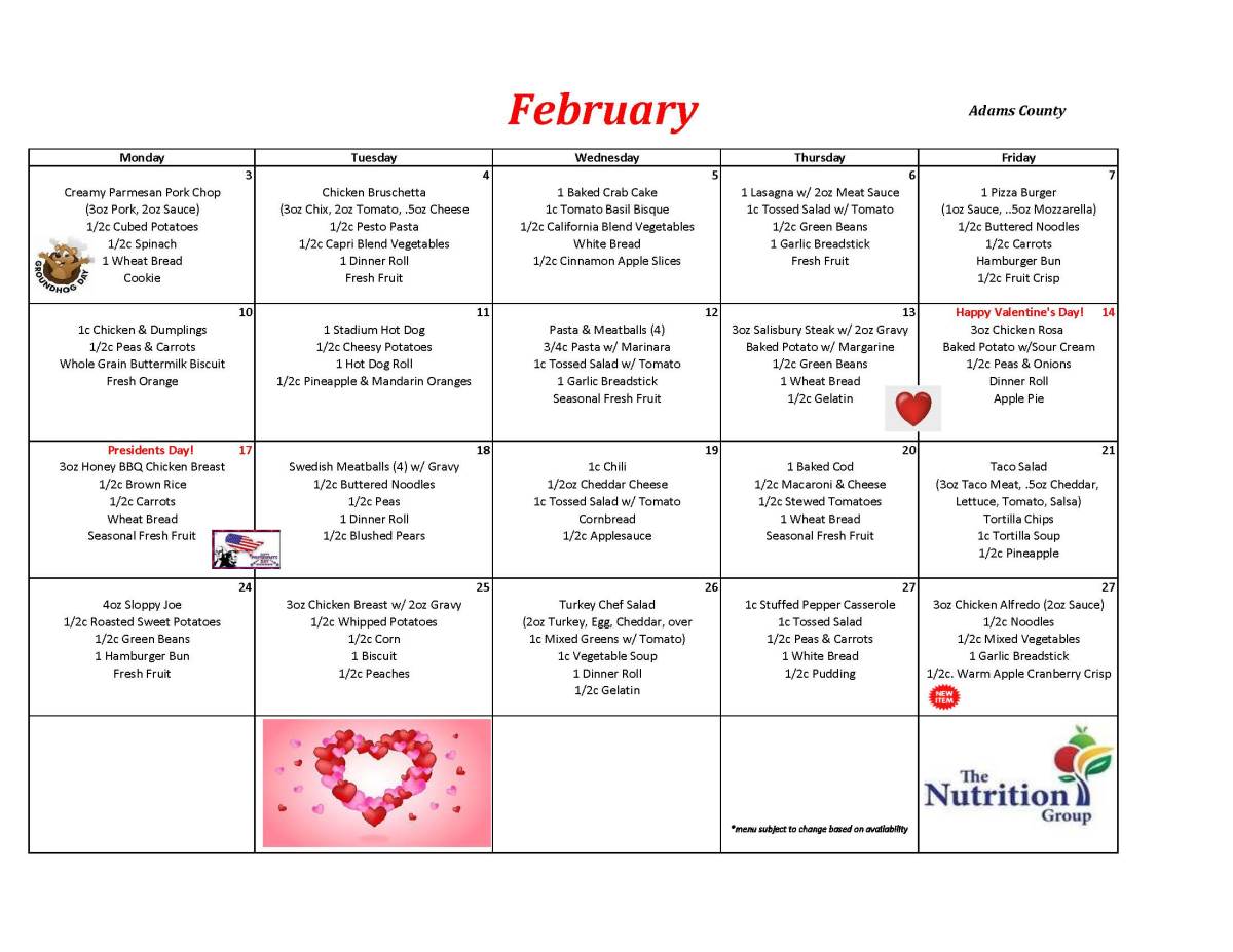 Please Find the Feb Menu and Activity Schedule Attached.
