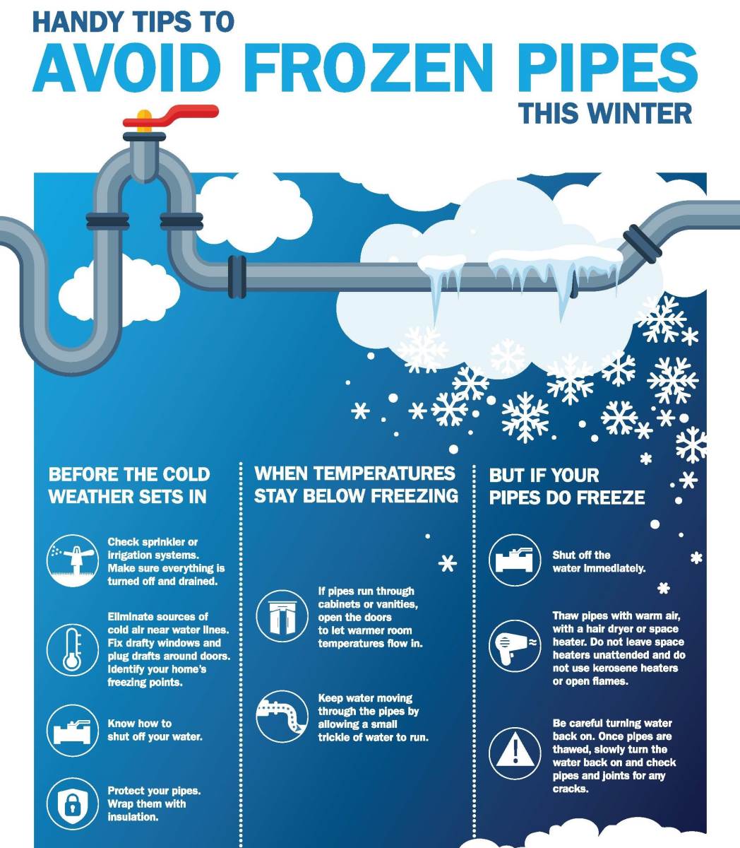See attached handy tips to avoid frozen pipes during current and upcoming frigid temperatures.
