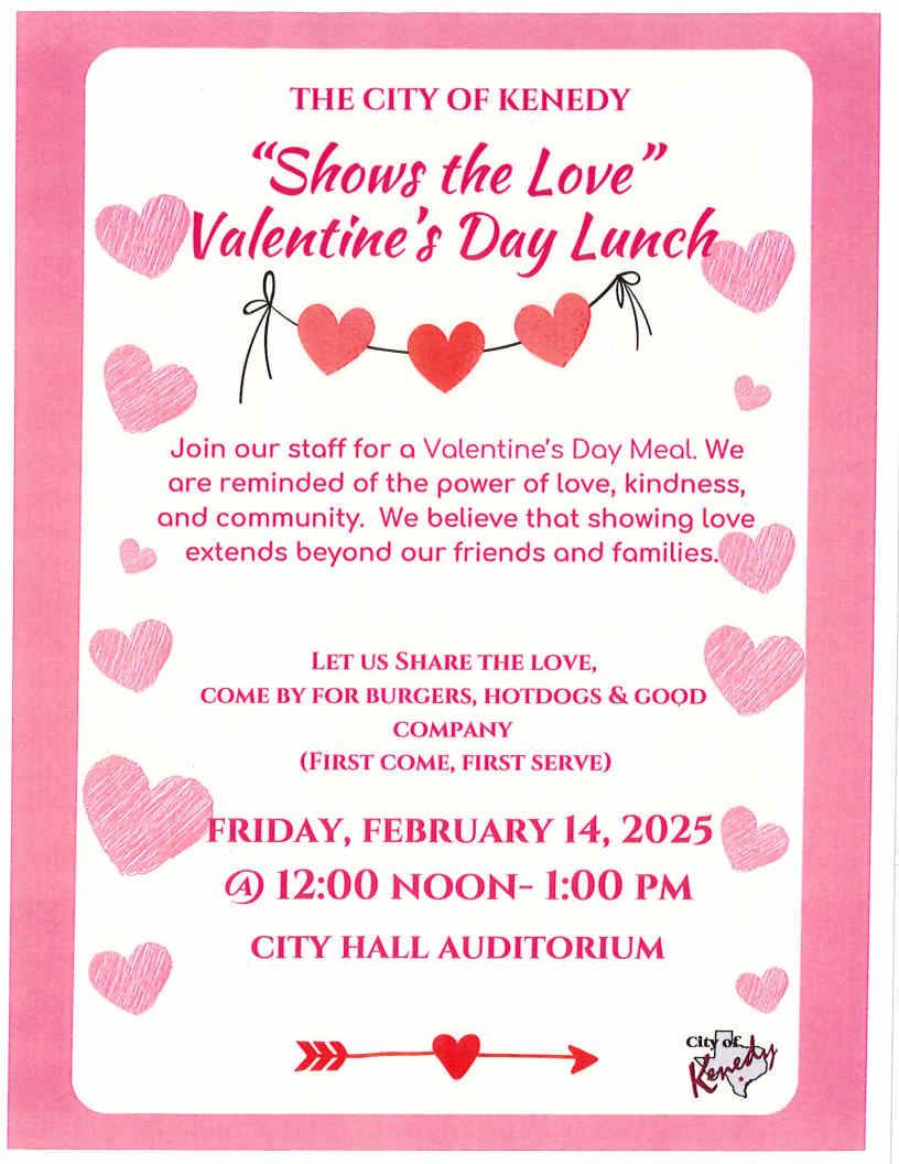 Join us for our 2nd Annual City of Kenedy "Shows the Love" Valentine's Day Lunch!!
