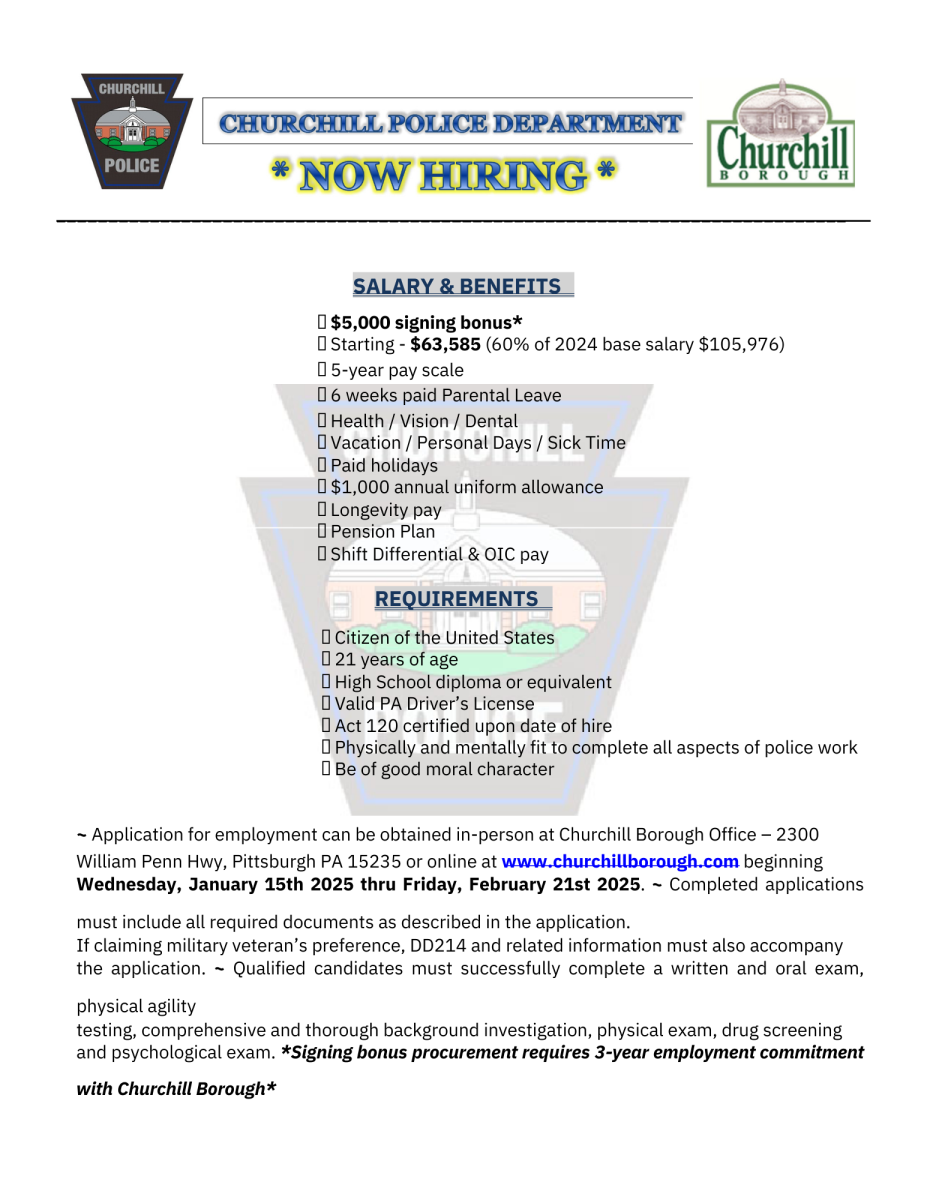 The Churchill Police Department is looking for motivated individuals to join our team! If you're committed to public service and ready for a rewarding career in law enforcement, apply today.