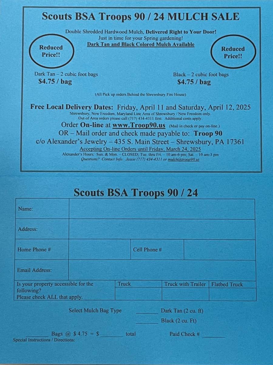 This weekend, Boy Scouts will be canvassing the Borough in an effort to distribute flyers for their upcoming Mulch Sale.